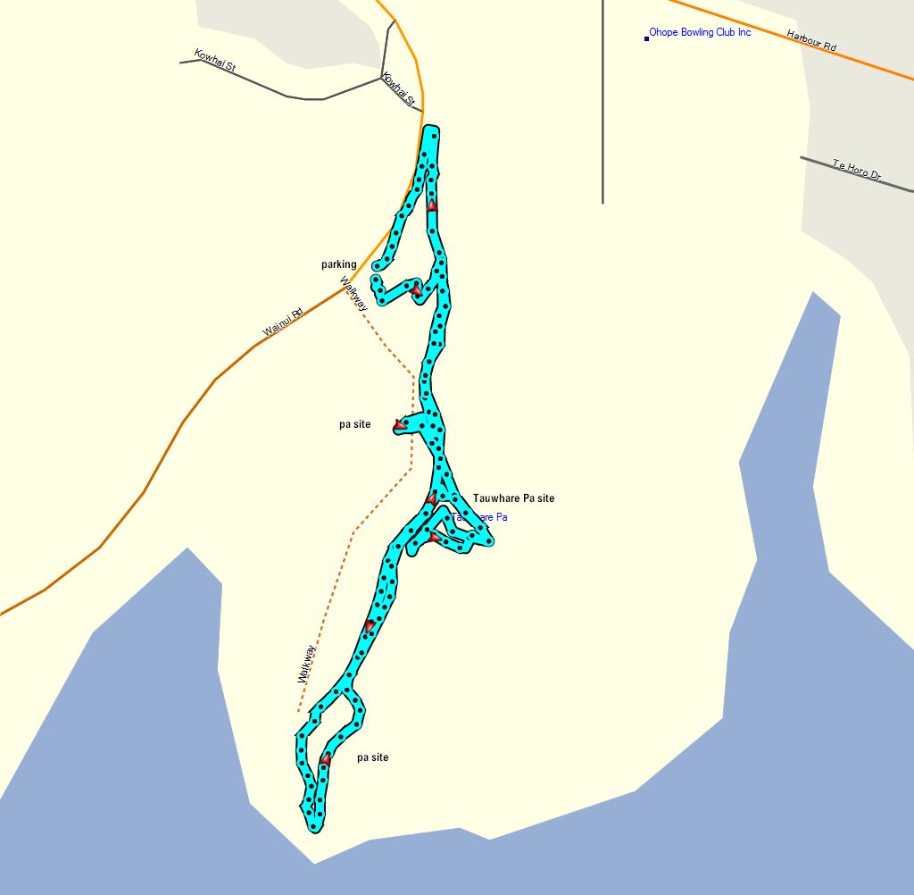 The walk to Tauwhare Pa is a very short and easy walk on the outskirts of Ohope, accessible from Wainui Road. There are 3 pa on the site, but all were damaged in the 1950s when work was done on a potential residential subdivision. There are views from the pa sites to the eastern part of Ohope, and across Ohiwa Harbour to Ohiwa and Wainui.