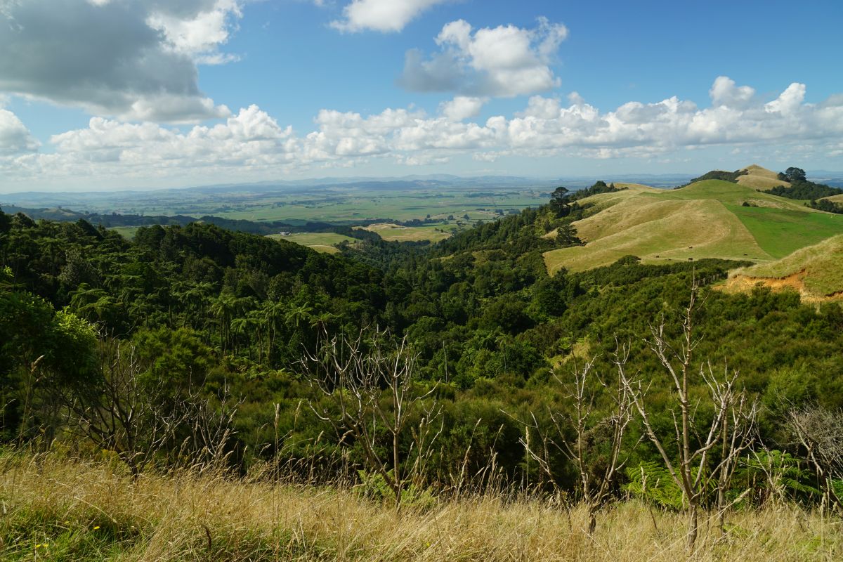 A vista of the north and central Waikato district now opens up behind the Mt William peak.