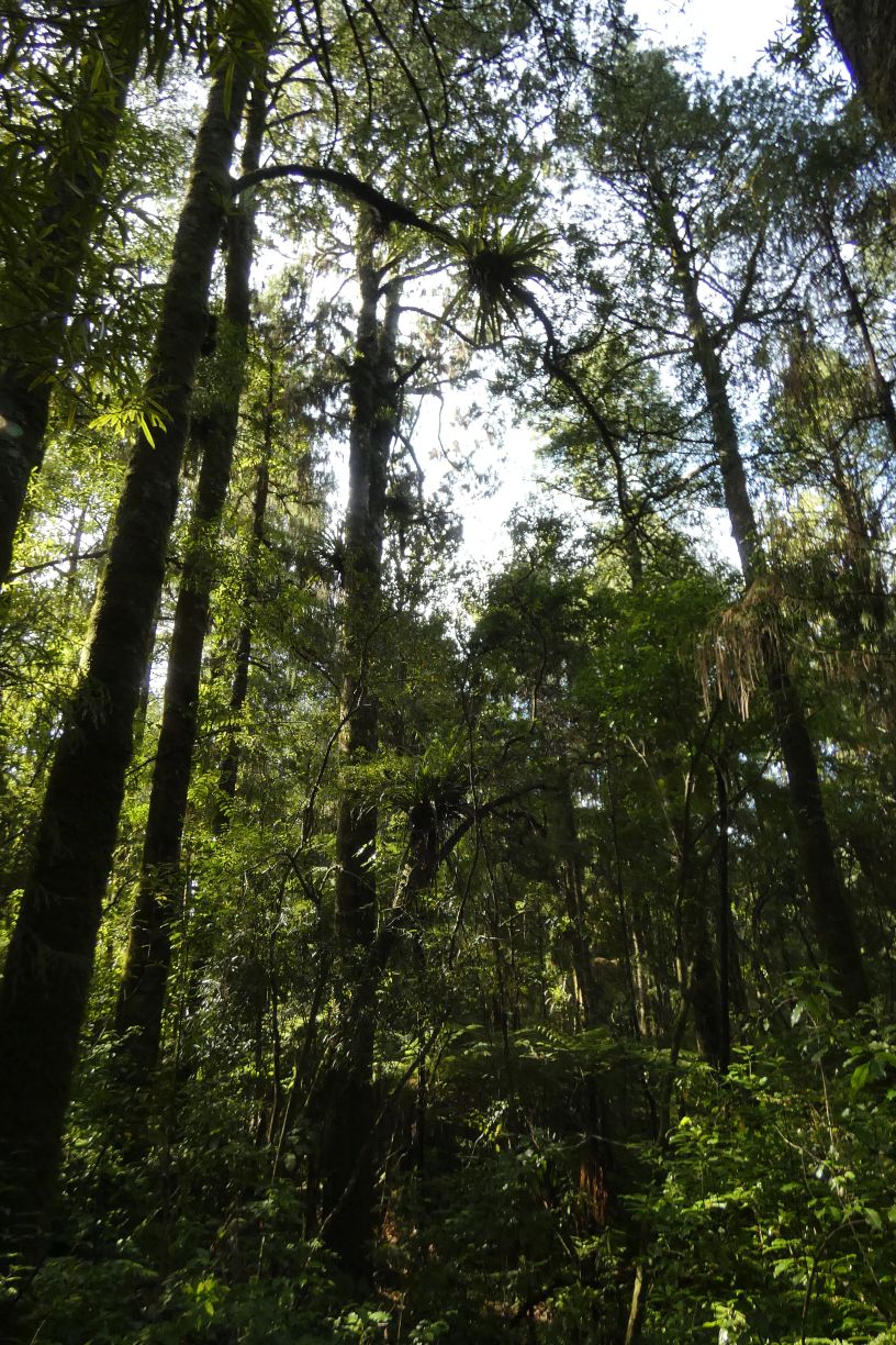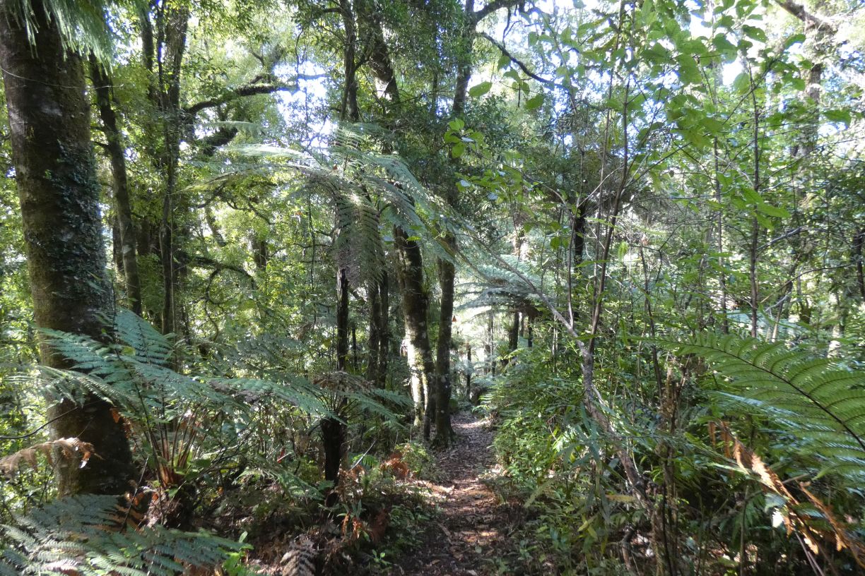 More tall and straight, but somewhat smaller diameter rimu trees along the track.