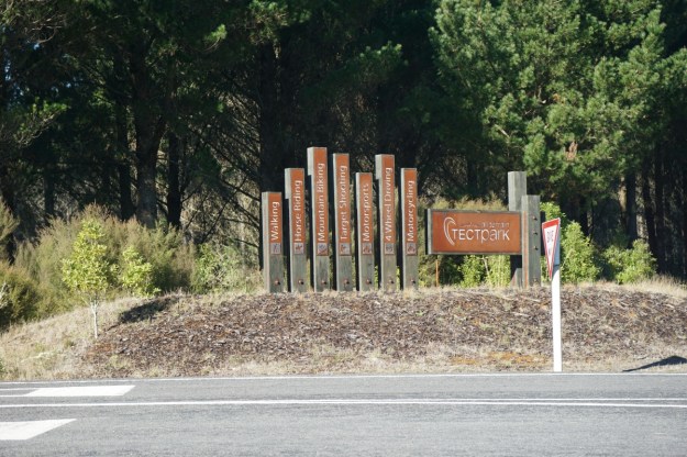 Marker posts at the intersection of SH36 and Whataroa Rd indicate the activities available in the park, including walking, horse riding, mountain biking, target shooting, motorsports, 4 wheel driving, and motorcycling (off-road). Most of the horse tracks and mountain biking tracks can also be used by walkers.