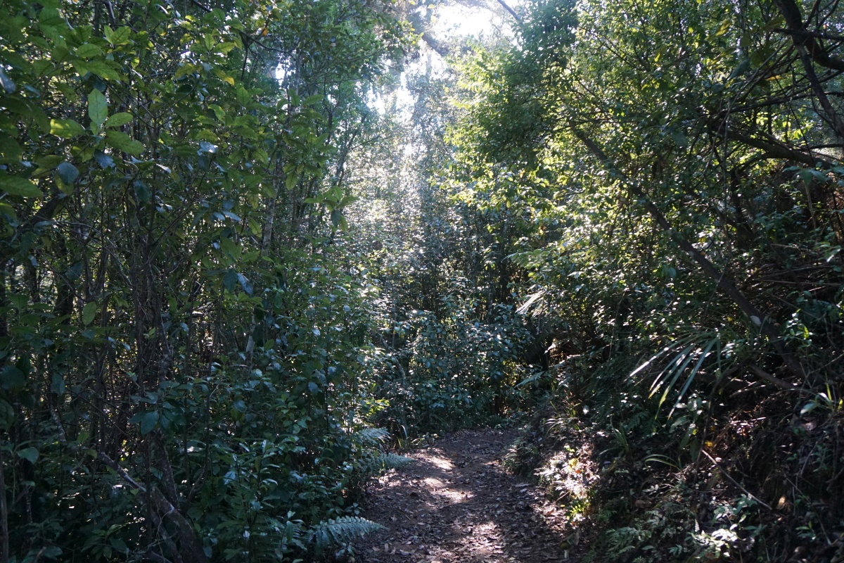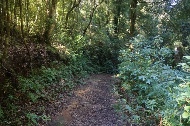 The track starts in the south-west corner of the carpark, across the forestry road to the right of centre, heading into the regenerating native bush.