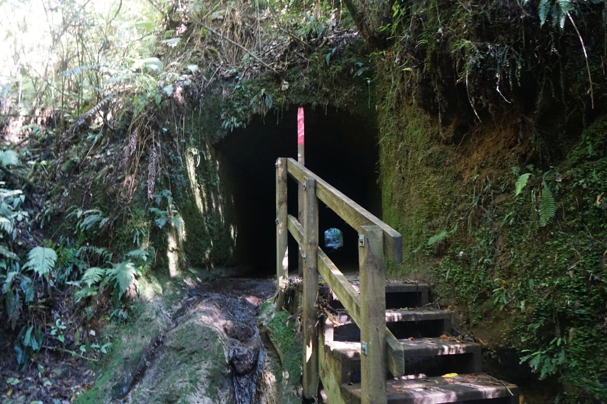 The GPS tracklog shows the location of Te Rerenga Track and some points of interest. The GPS lost reception in the tunnel, so the first part of the track shown to the west of the tunnel is not correct. The total distance was 3.2 km, and the walk, including plenty of time for photos, took 55 minutes.