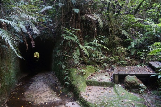 Looking back from the other end of the tunnel. The track continues up the steps to the right.