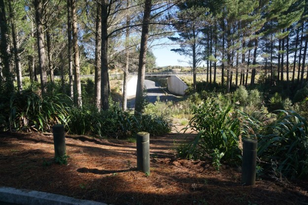 Approaching SH36 on Te Rerenga Track. Weld Rd is on the right, and the underpass under SH36 is visible on the right.