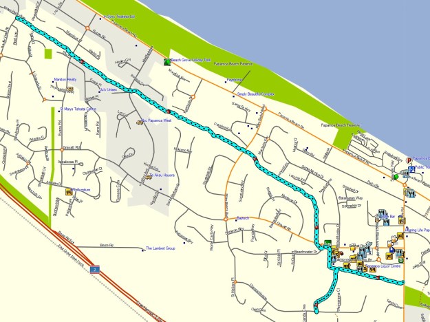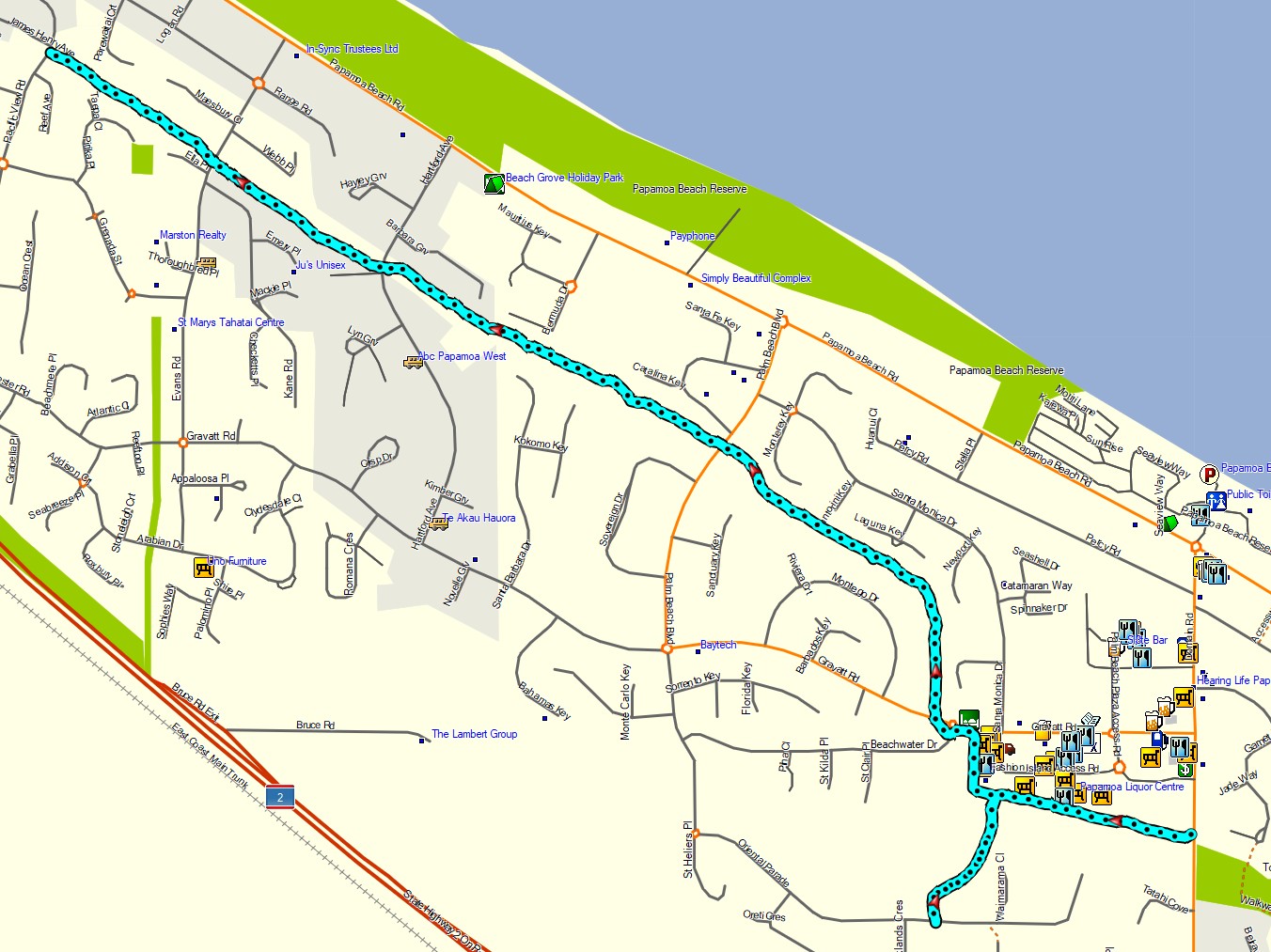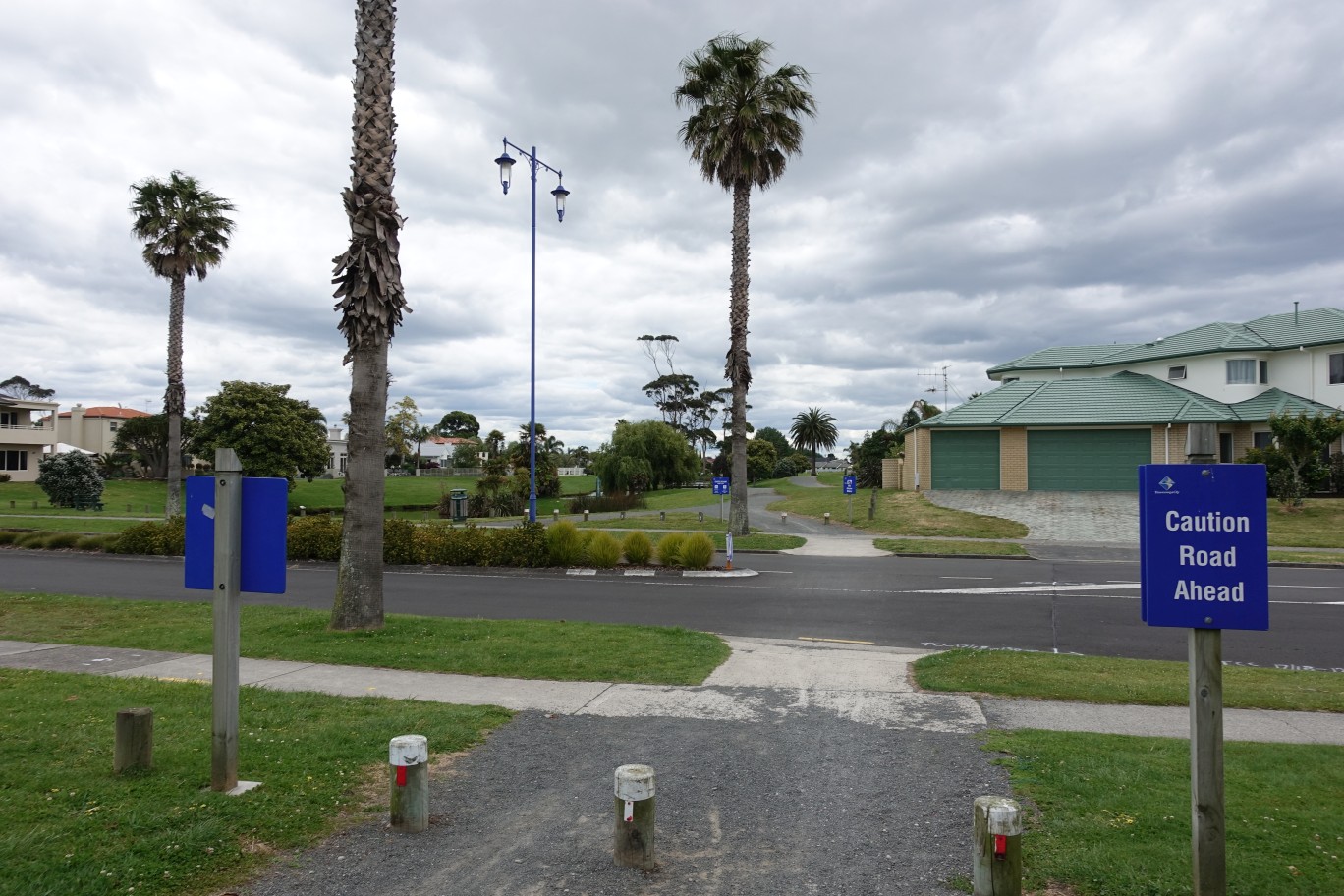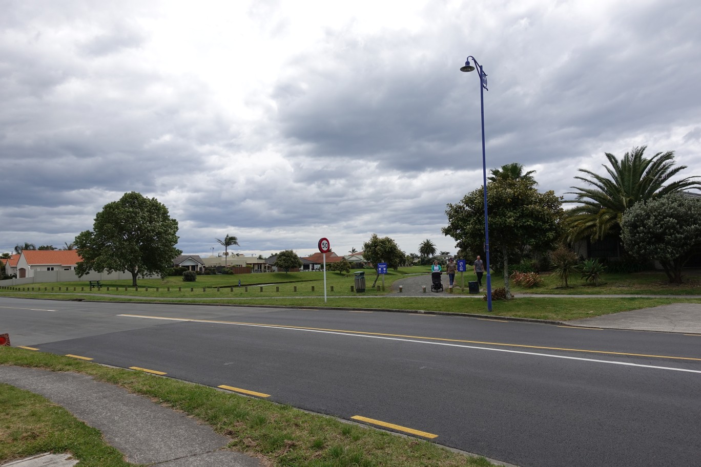 There are various parking options at the shopping centre on Domain Rd, on Domain Rd itself, or on nearby streets. There are toilets in the Papamoa Plaza and in other locations within the shopping centre. On the one-way walk, but including the longer side track to Oriental Parade walked in both directions, the total time from Domain Rd to Pacific View Rd was about 45 minutes, with a distance of 4 km. Without the side track the distance was 3.3 km, with a time of about 40 minutes.