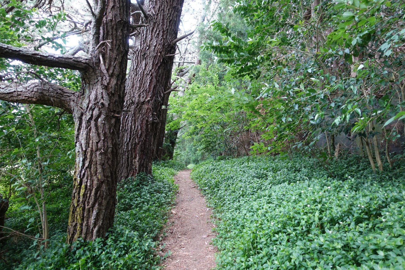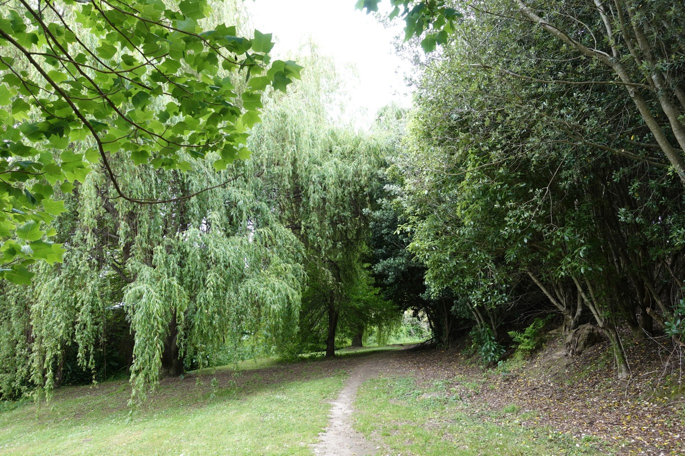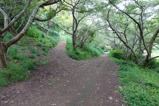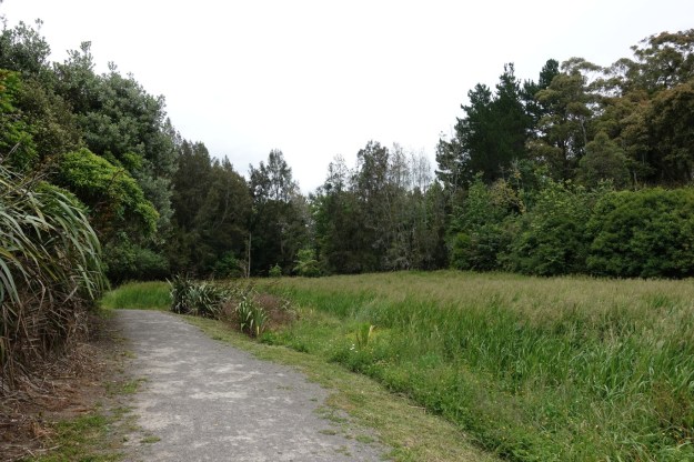 The concrete track ends at an open grassed area, with a short walk through the grass to the eastern track, seen just left of picture centre.