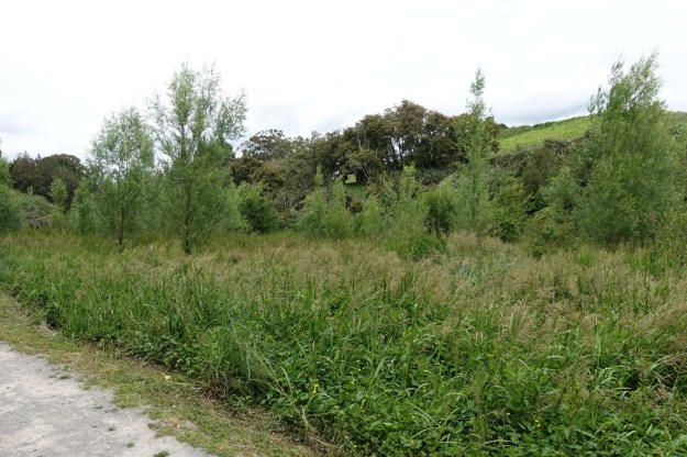 Looking from the western track across the valley to the eastern tracks, with Ohauiti Rd just visible to the upper left behind the grass area.
