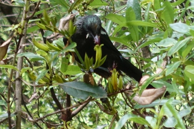 With the flax bushes flowering the tui are never far away.