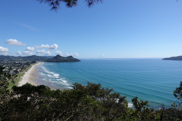View over Pauanui and Tairua from the lookout near the trig station at the summit.
