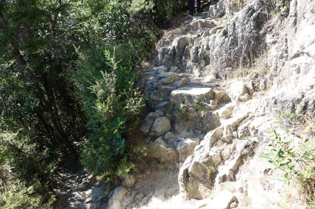 In several locations there are alternative tracks. A more direct, steep track, and a gentler track that zig-zags and joins with the steeper track further up the hillside. The gentler tracks appear to be used more than the direct tracks.
