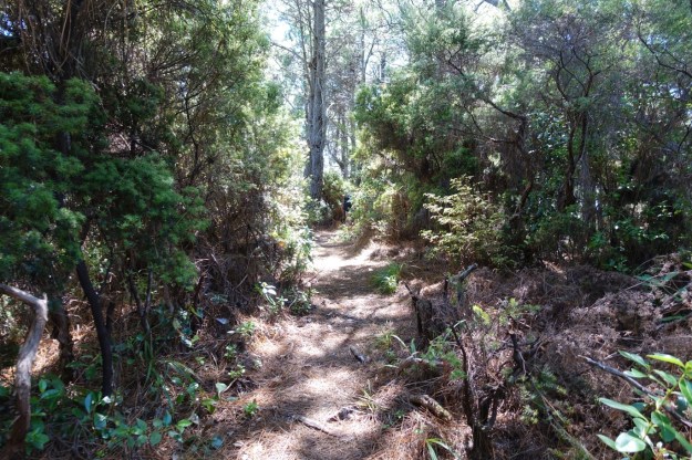 Returning a short distance from the lookout there is a track branching off to the east, heading down towards Cave Bay. The signs indicate a 1 hour 30 minute walk to the carpark via Cave Bay, and 45 minutes returning by the steep direct track.