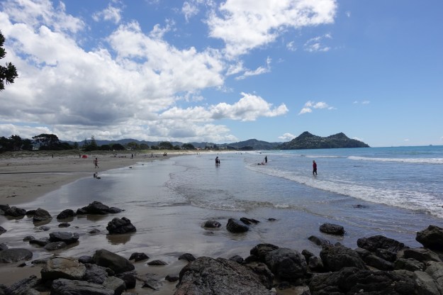 The beach at Pauanui on a warm, late summer day.
