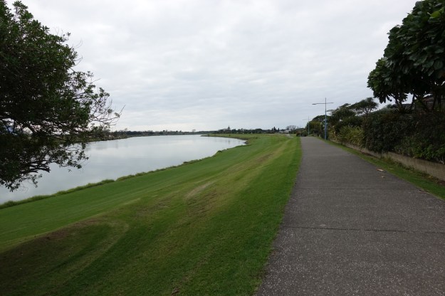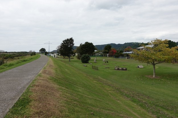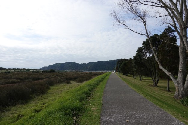Near the Mcgarvey Road access there is an area of saltmarsh between the walkway and the Whakatane River. Whakatane Gardens is to the right.