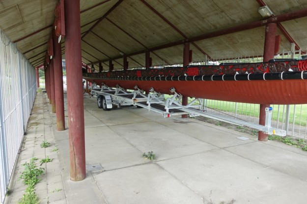 The Mataatua ceremonial waka (canoe) is located in a special enclosure in the reserve.