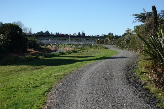 Approaching Wylie Street access there is a bridge across the Kopurererua Stream. The Whakapaewaka bridge across Takitimu Drive/SH29 can be seen on the far right.