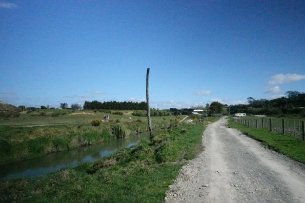 From near the end of Wylie Street there are two tracks heading towards Tauriko and The Lakes, one on each side of Kopurererua Stream. This one on the western side is mostly straight and level until it nears SH29A and Tauriko. The one on the eastern side, visible across the other side of Kopurererua Stream, rises to follow a more winding route. The two tracks are joined by a bridge across the stream, and continue to Tauriko as a single track.