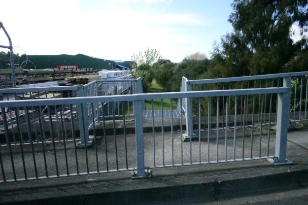 Most of the track towards Waihi Road behind the buildings on Birch Street follows a stopbank consisting of a concrete wall. It’s possible to walk or ride on either side of the wall.