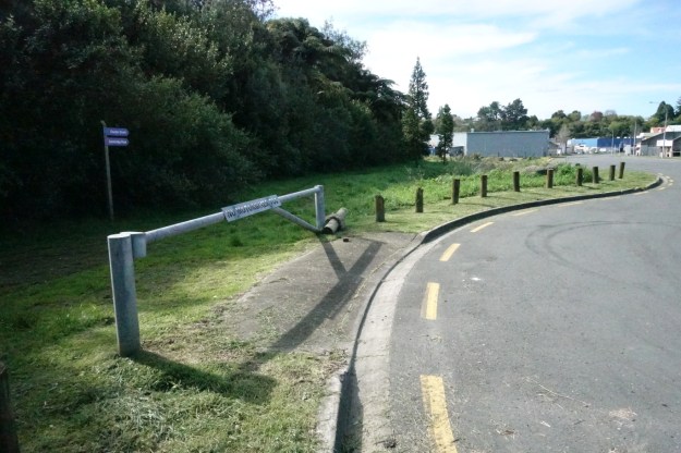 The access point on Cambridge Road to the BMX track and the walkway/cycleway. The road from here to the BMX track is tarsealed.
