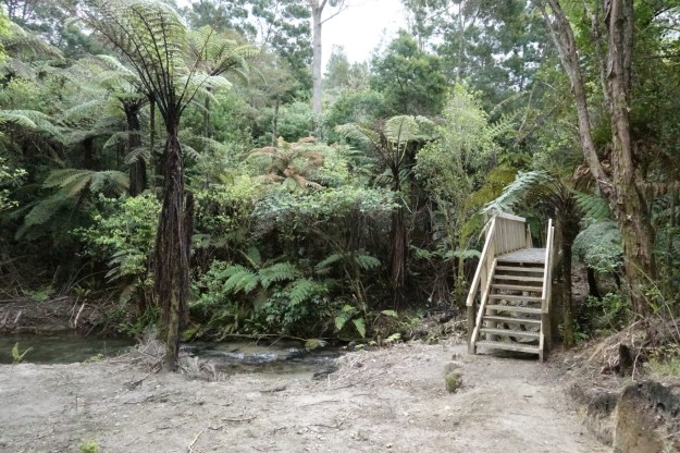 The new bridge across the Karaponga Stream. From here the track closely follows the stream up to the waterfall.