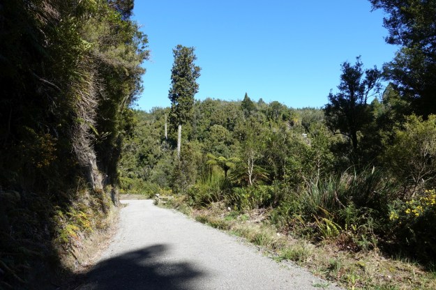 The walk starts at the mountain bike hub parking area at the end of Mangakopikopiko Road. After turning off SH36 onto Whataroa Road take the first turn left onto Weld Road, then turn right at the end of Weld Road onto Te Ara Raho Road, which continues onto Mangakopikopiko Road. At the end of the road is the carpark with a shelter and a toilet, shown on the far right. The track to the lookout starts at the far left.