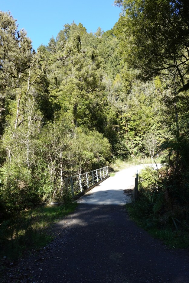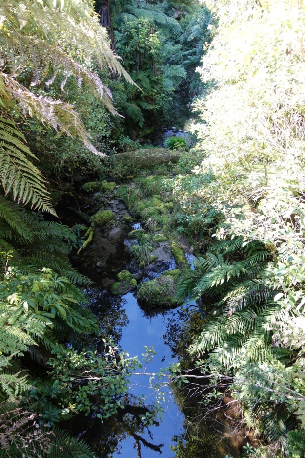 The track winds its way downhill for about 500 metres through native forest, before reaching the lowest point and a bridge across a stream. The track is shown on park maps as the Buffalo Girl Track.