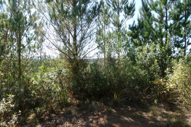 For some reason I was convinced that I was following the track shown as Galaxy (which apparently no longer exists) to the radio repeater site. And on the map it looks as if the tracks to the left (which is actually north) and below the repeater continue on past the repeater. The track/forest road does continue past the repeater, and with no signage it seemed natural to try following it. Someone had even scratched a very prominent arrow on the road pointing in that direction. But after walking on forestry roads with no signs at all for some time it became clear that the best way of getting back to the carpark was to retrace my steps back to the repeater and then follow the original route back down. It’s a large area, with roads not very far from the boundary of the park, but with no apparent connections to the park tracks. The total walk turned out to be just over 14 km, instead of about 6 km. The extras are not shown in the tracklog.
