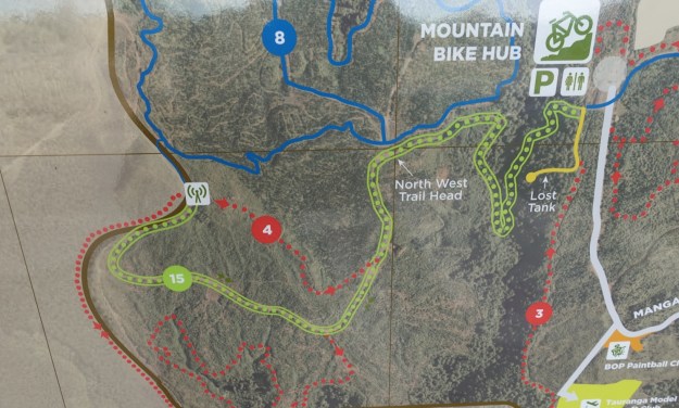 The TECT All Terrain Park is located on Whataroa Road, off SH36 (Tauranga Direct Road) between Tauranga and Rotorua. Numerous activities are catered for in the park, with the area west of SH36 covering non-motorised activities, such as horse riding, mountain biking, hiking, model aeroplanes, shooting, and dog exercise. Details of the park can be found on their web site. Various maps can be viewed or downloaded from the maps page on the site.