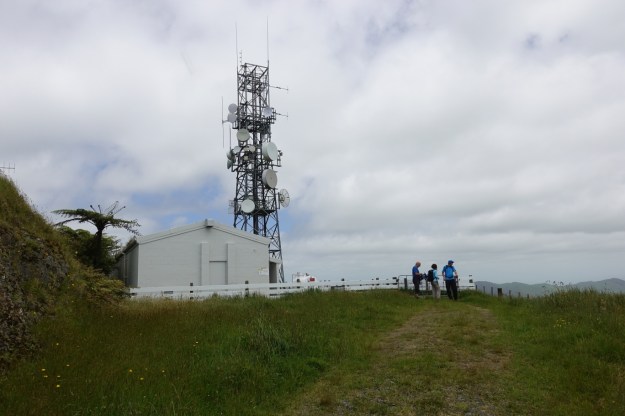 The last part of the ascent is through the grass area, and along the vehicle track visible to the left. There is one large steel mast and two smaller wooden poles for transmission aerials.