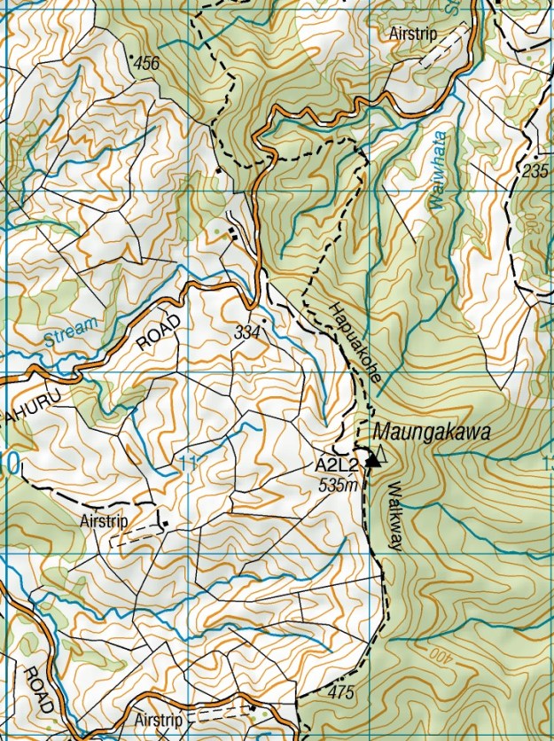 The topographic map excerpt shows the Hapuakohe Walkway by Ohinewai Road in the correct location