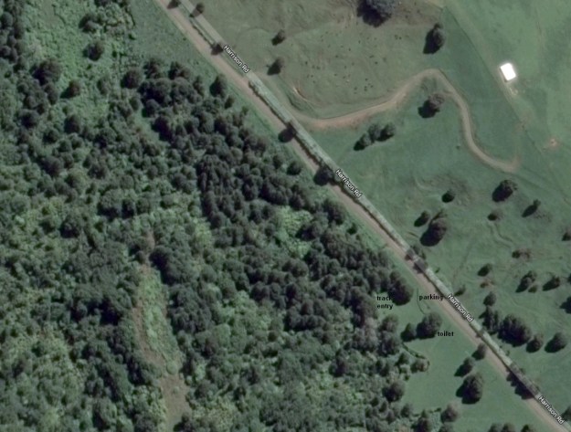 The aerial photo, from Google Maps, shows only the part of the scenic reserve with the track.