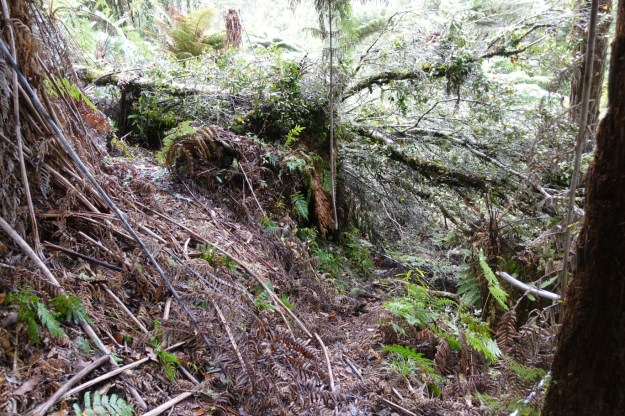 In several places fallen trees lie across the walkway. This one being one of the worst and probably most recent, since the detour track above the roots off to the left was not very obvious.
