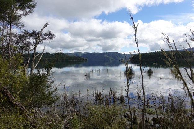 The lake at Oruaroa Bay. From here the walkway continues fairly close to the lake edge, with no long, steeper climbs.