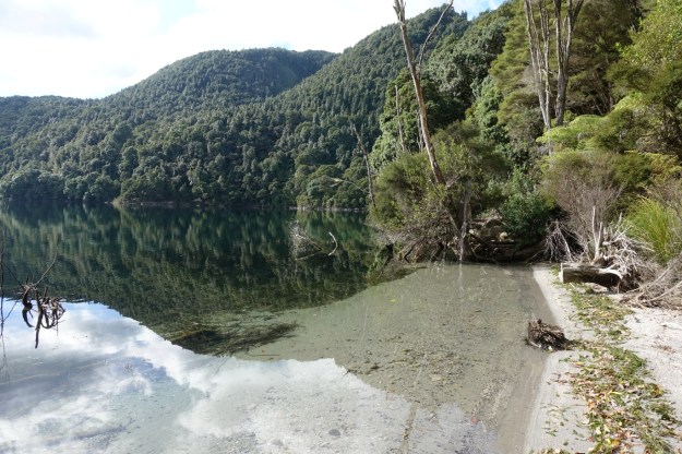 The small beach at Otangimoana Bay. A great spot for a late lunch, with the clear water showing reflections of the tree-covered hillsides alongside the lake. This was the turnaround point for the walk back to the parking area at Tauranganui Bay.