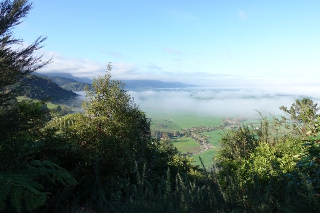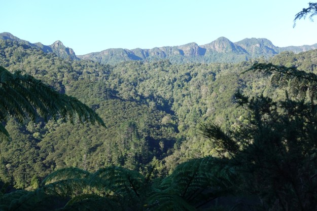 On the return walk the afternoon sun was shining on some of the peaks of the Kaimai Range, to the east of Waiorongomai Valley.