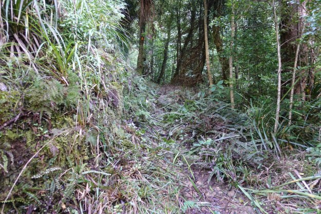 With tall vegetation on both sides of the track there are only occasional glimpses of surrounding hills. Mt Te Aroha summit is off to the right.