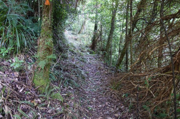 About a kilometre along the link track there is a junction with Waipapa Track heading off to the right, and the link track continuing to the upper left. The track levels out for some distance before and after this junction.
