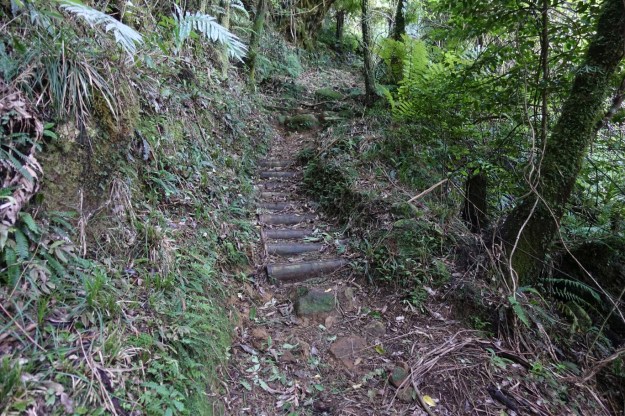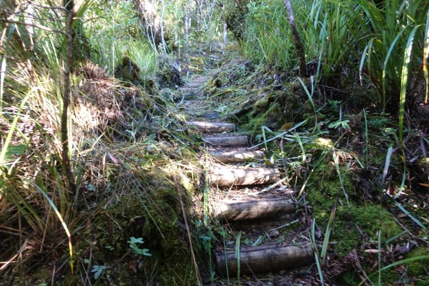 The track gets steeper again as it approaches the Dog Kennel Flat junction, with more wooden steps.