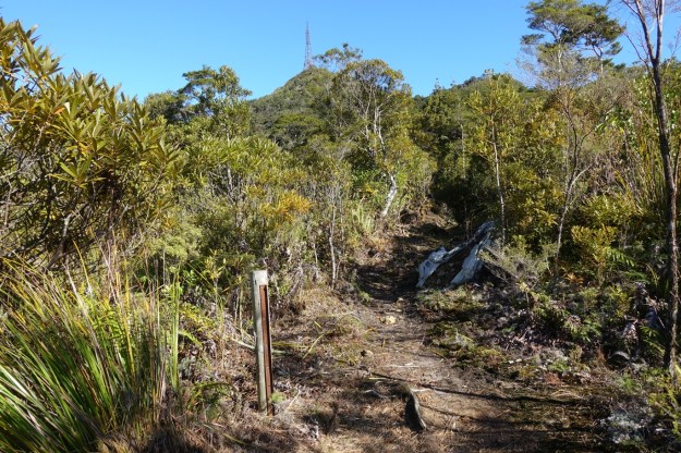As the track opens up there are views to the summit of Mt Te Aroha, with its prominent mast.