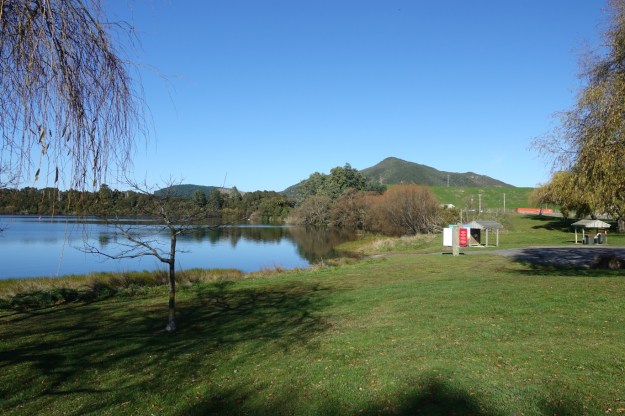 Looking across the lake with Maungakakaramea at 743 metres high on the left, and Maungaongaonga at 825 metres on the right.