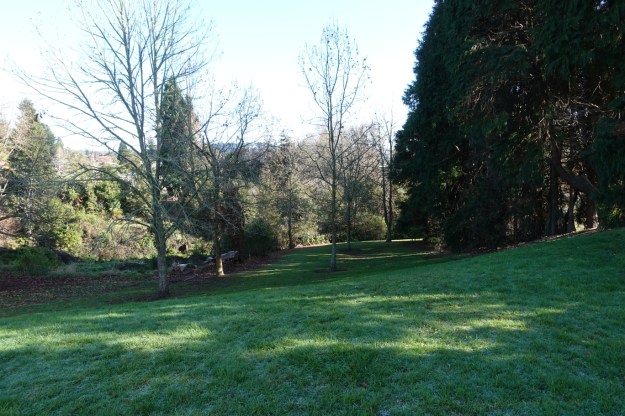 There are several alternative tracks through Tihi Rd Reserve, including some wrong ones, and the reserve has several entries off Tihi Road. This walk followed some walkway signs, heading towards the southern end of the reserve, before returning and crossing over one of the tracks leading across the valley. It branches sharply to the right not far from this row of trees.