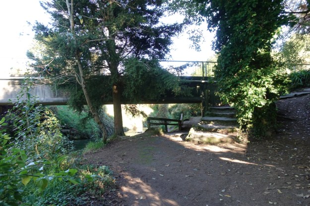 The route then crosses a small bridge at the bottom of the valley and then heads up the other side to McDowell Street.