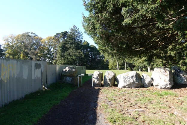 The first part of the walk is along Kotuku Street, turning left onto Kiwi Street, and then crossing diagonally over Otonga Road to enter Jackson Park alongside the school. There is no marked track through the grass area, but it runs alongside the school and either left or right of the taller row of trees seen just left of centre.