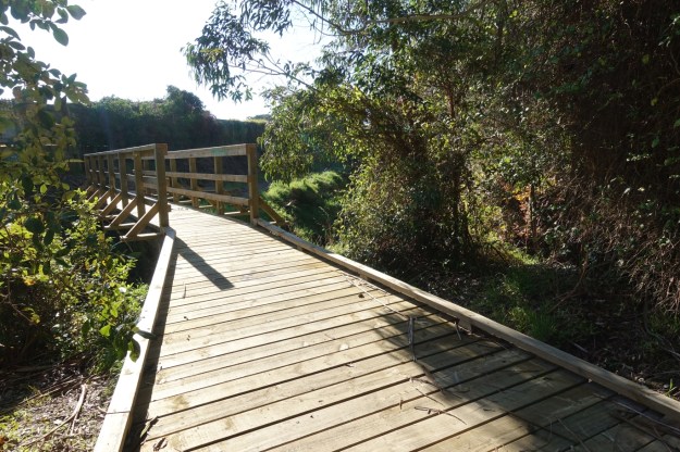 On the map in the walkway brochure the track takes a loop through the trees on the right, following the stream. However it loops around and comes back through the same location before exiting onto Devon Street by the trees on the far left.
