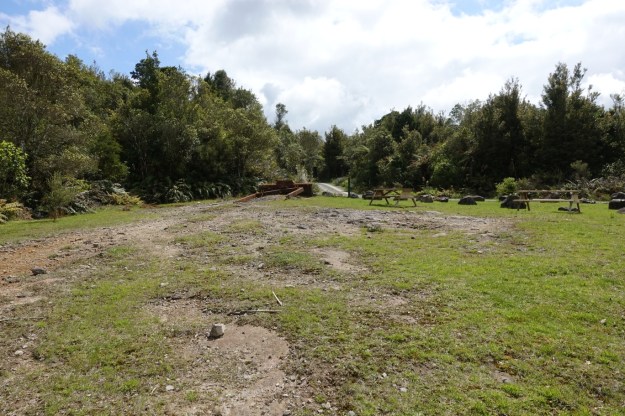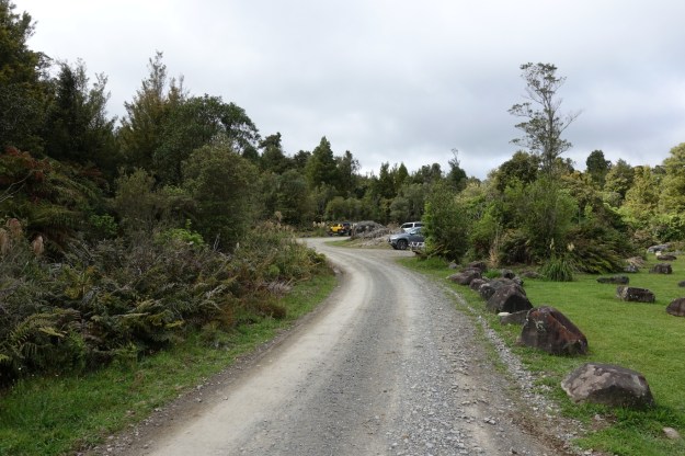 The Bulldozer Blade clearing picnic and parking at the end of the narrow extension of Whakamarama Road.