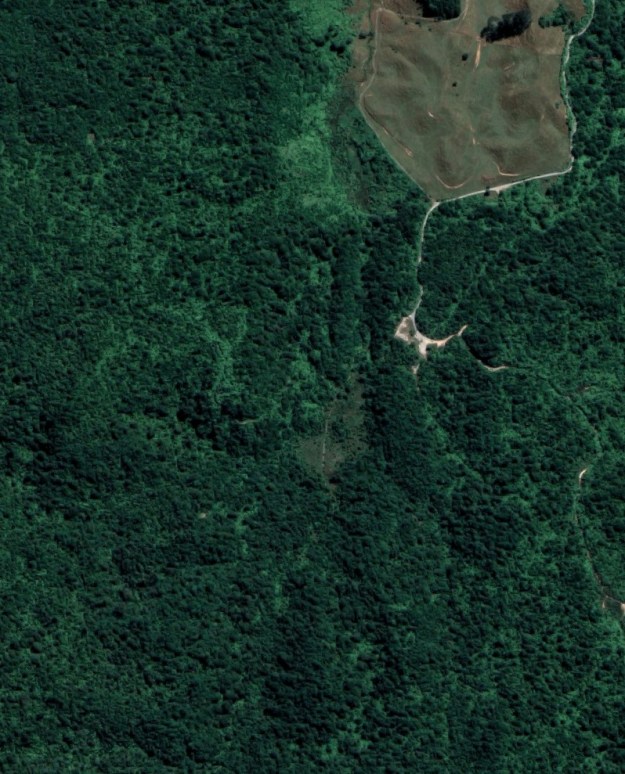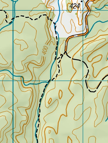 The aerial image, from Google Maps, and the topographic map show approximately the same area as the GPS tracklog map.