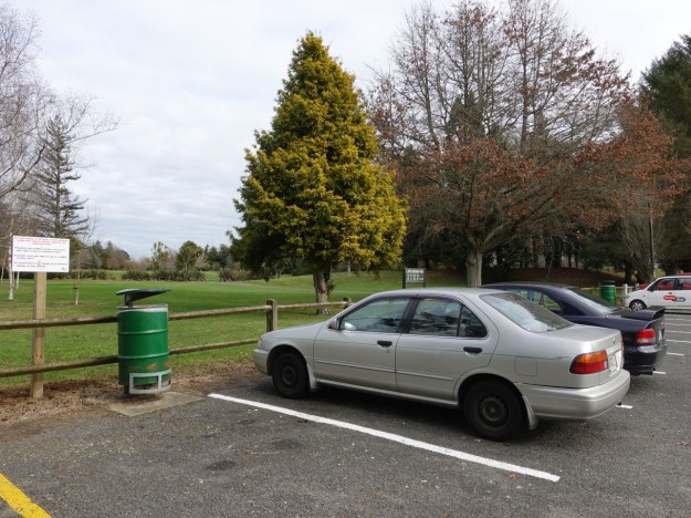 A side path leads up to the parking area on SH32/Maraetai Road, seen here. This is the main access point to the dog exercise area.