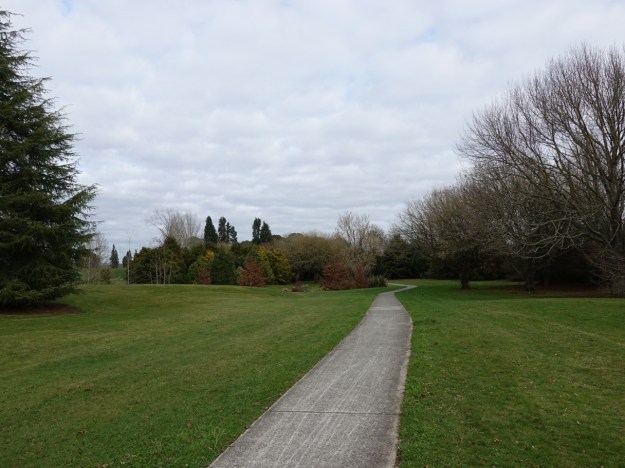 The pathway on the eastern side of the lake continues between the lake and Arawa Crescent.