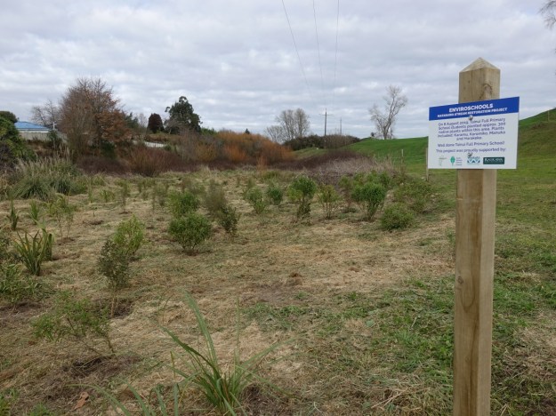 The recent plantings, part of the Enviroschools Matarawa Stream Restoration Project. About 300 native plants were planted by Tainui Full Primary School students.