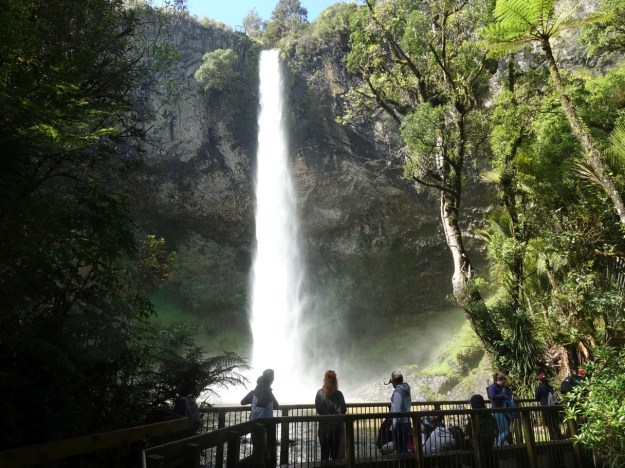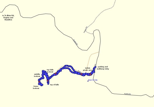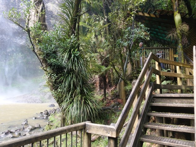From this viewing platform a set of about 260 steps leads to the middle viewing platform and the bridge across Pakoka River and the information shelter at the bottom of the falls.