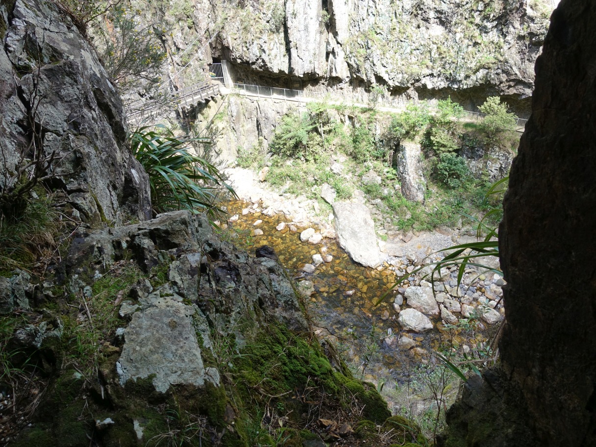 The sheer rock faces, narrow gorge and tunnels make GPS reception somewhat hit and miss. But the GPS tracklog shows more or less the route taken, with the loop walked in a clockwise direction. Total distance about 2.1 km, with a time of 45 minutes. For a longer walk this walk could be combined with the rail tunnel loop walk or with any of the other walks in the area.